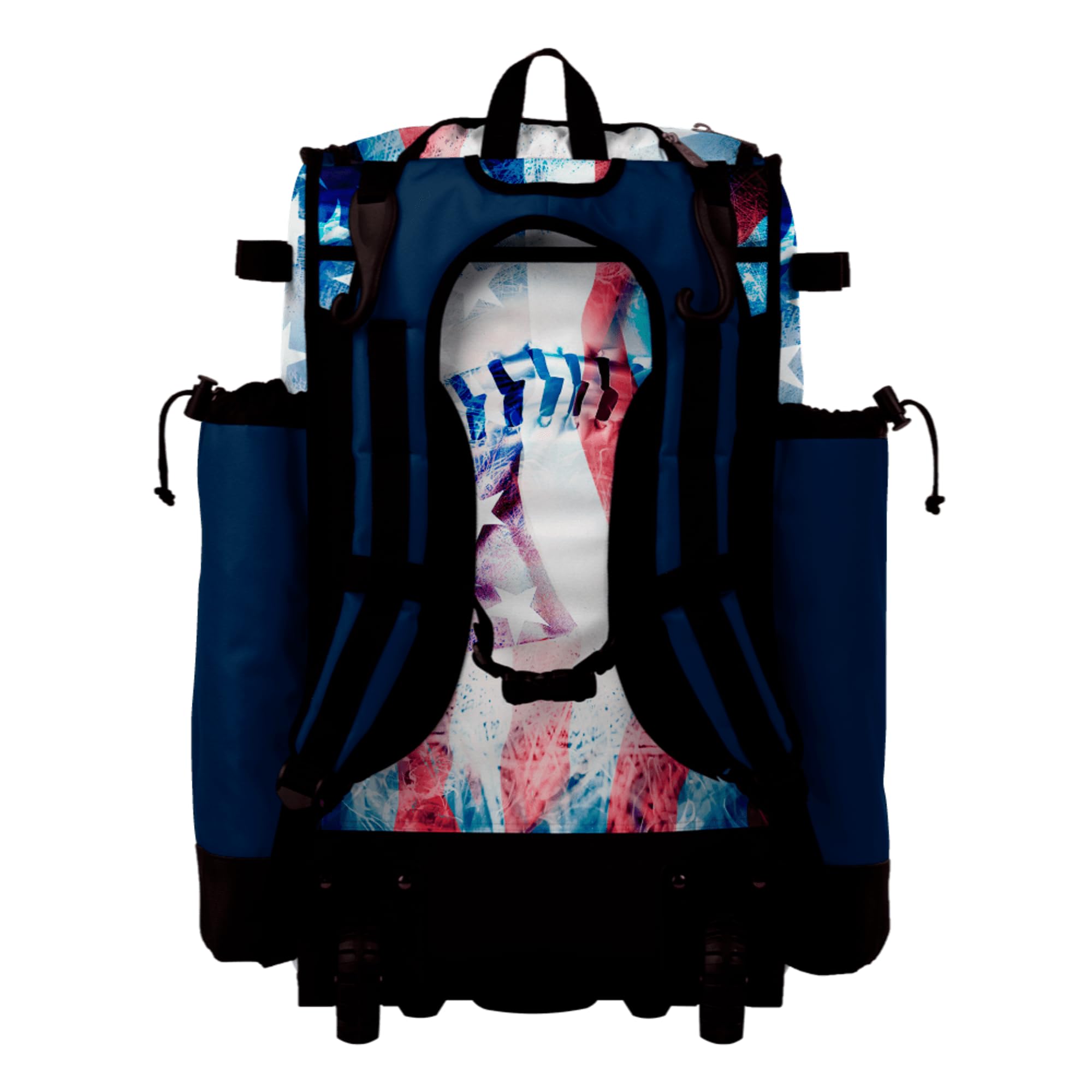 Boombah Superpack Hybrid Rolling Bat Bag - Wheeled & Backpack Version - USA Baseball Flag White/Royal Blue/Red—